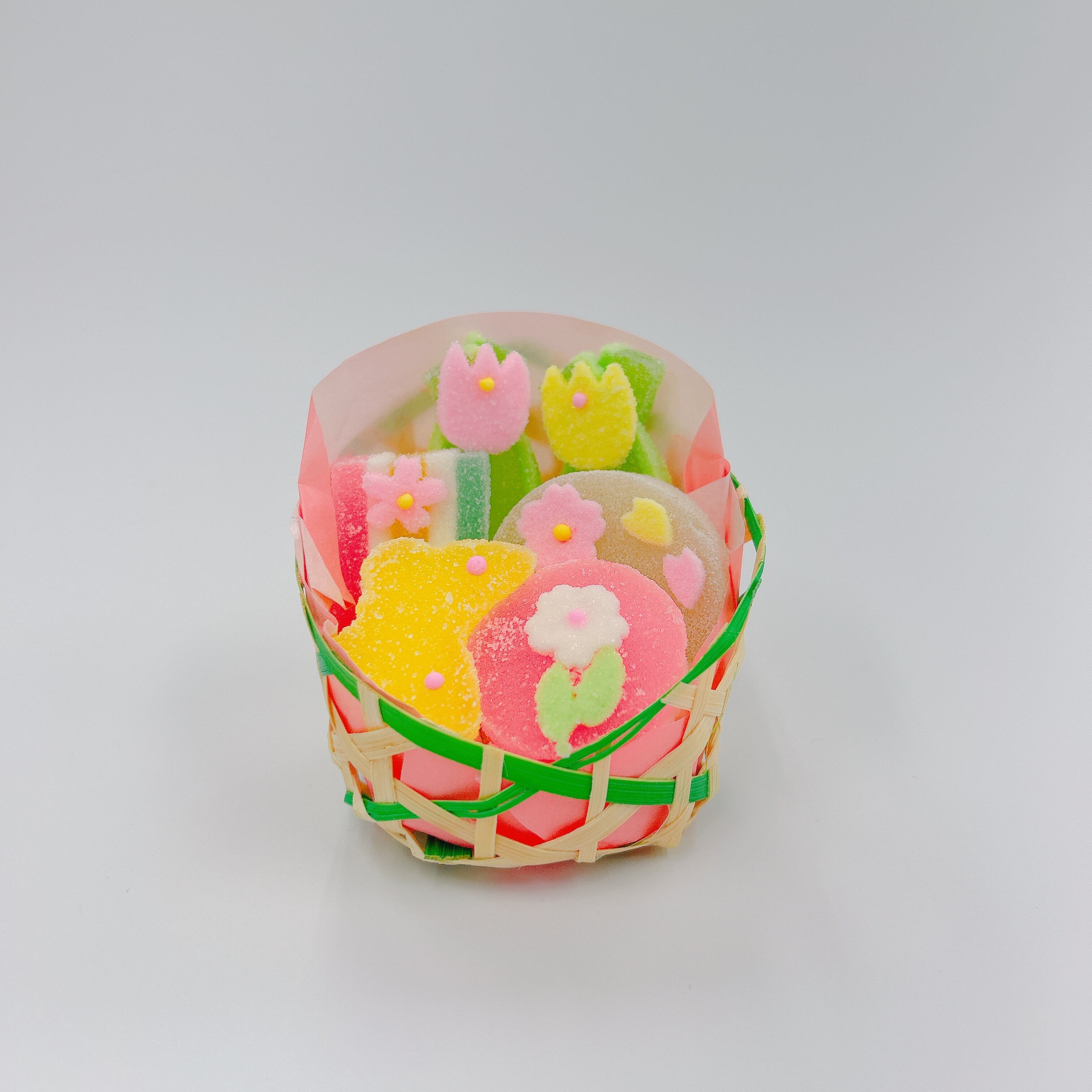 春の半生菓子が篭にたくさん入った人気の商品です