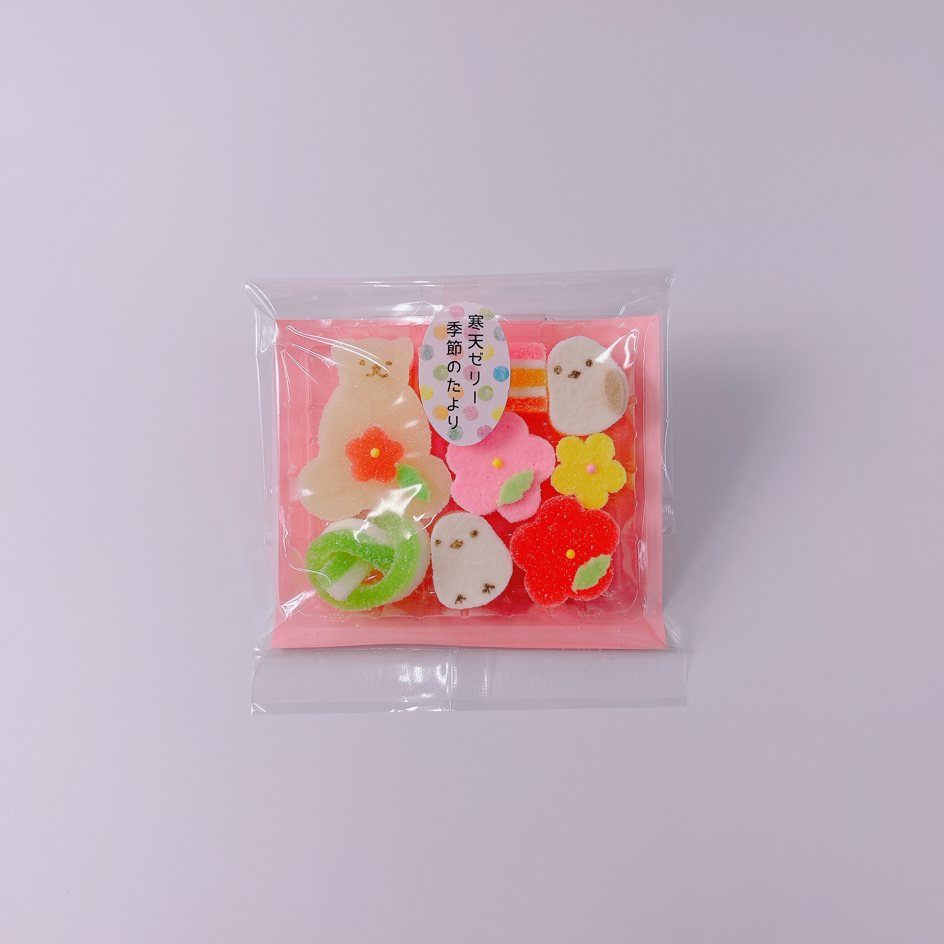 シマエナガ、シロクマ、梅の花など冬の寒天細工ゼリーがたくさん入ってます