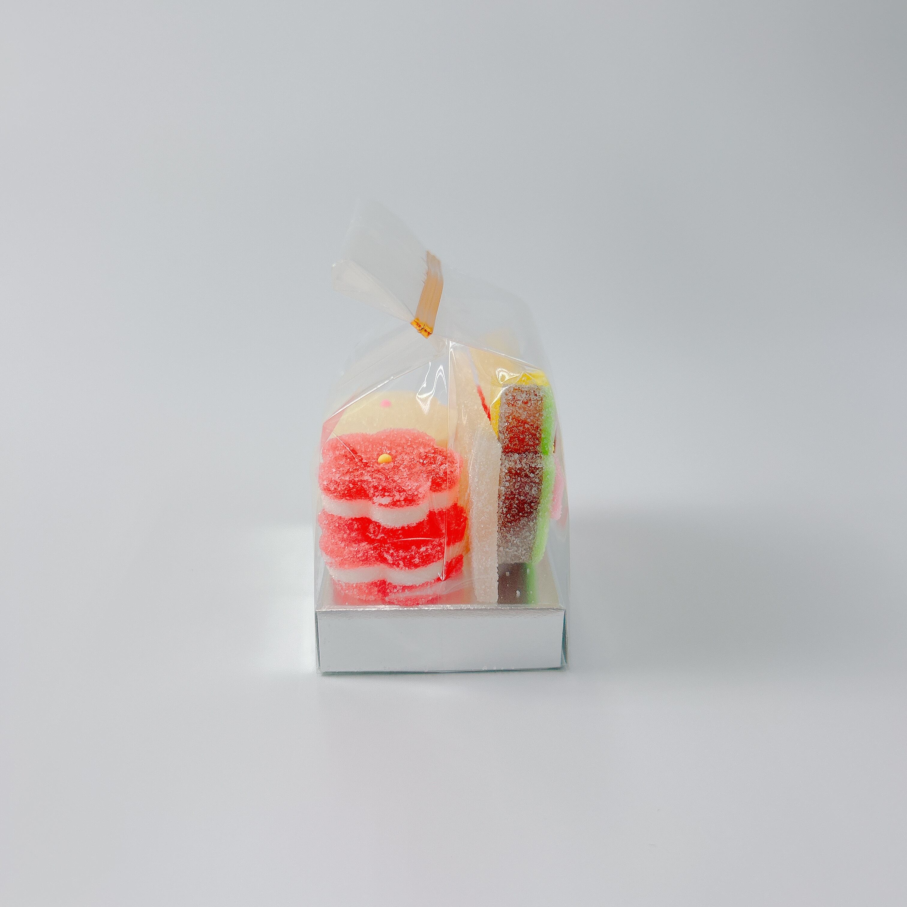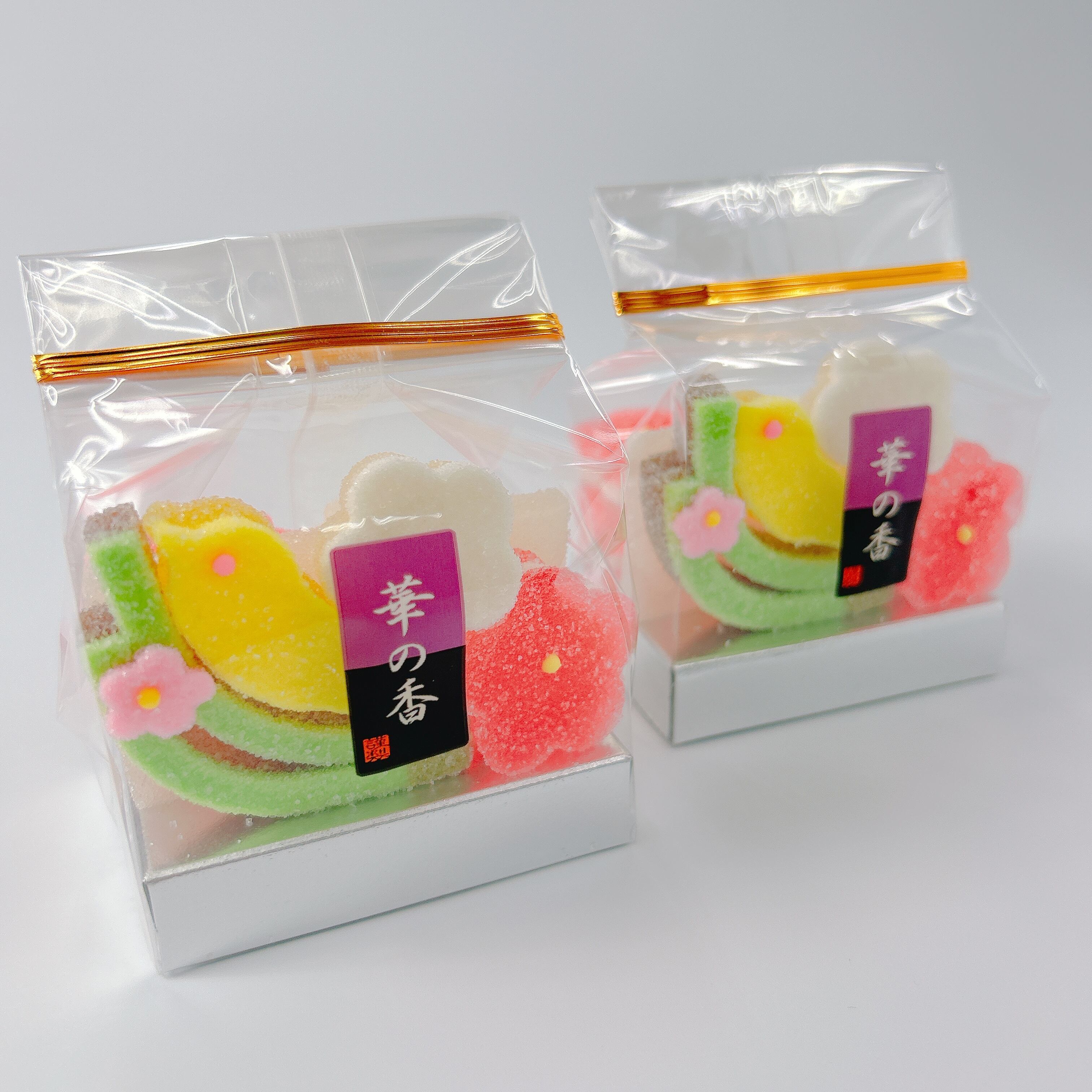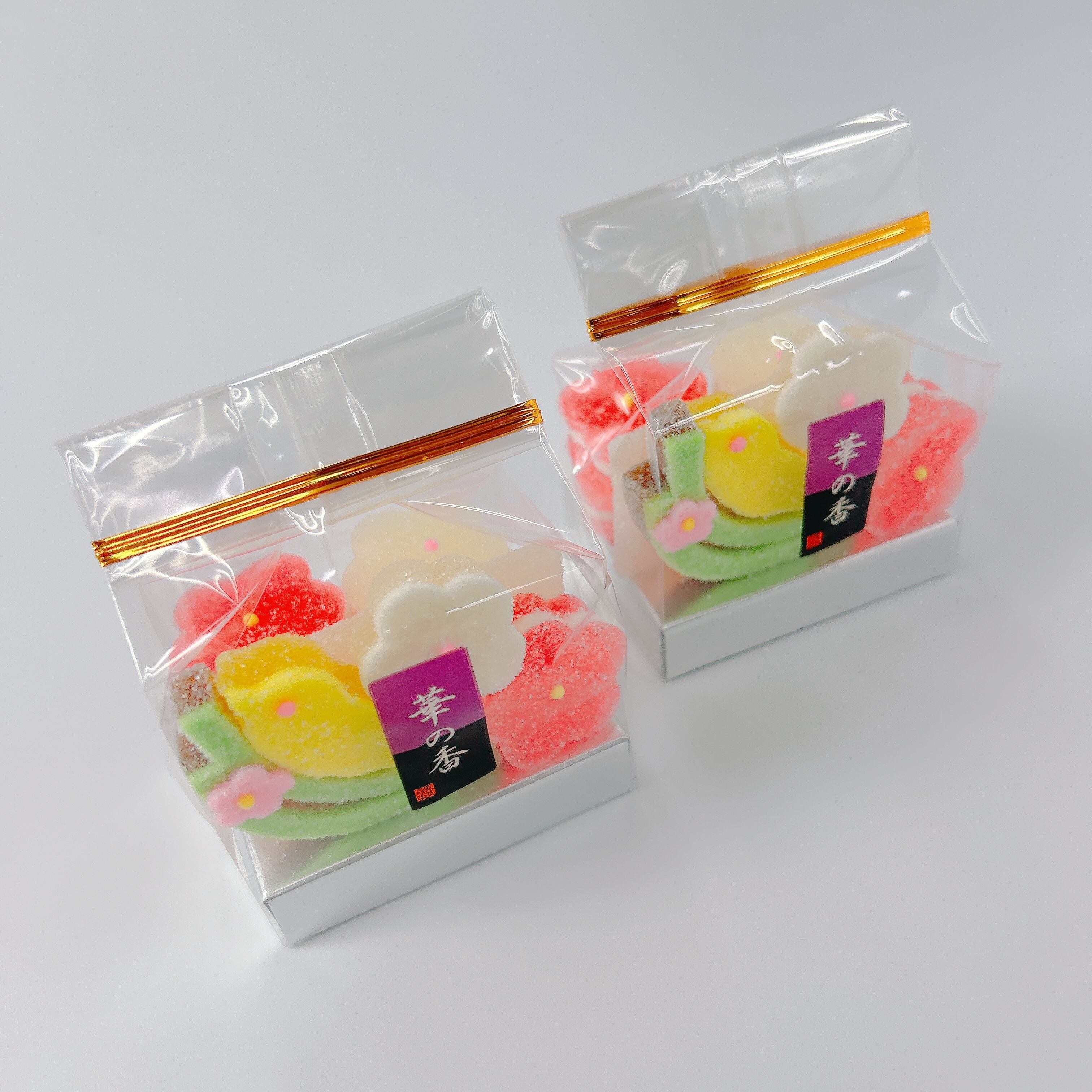 うぐいす、松葉、2色の梅などの寒天細工ゼリーが入った商品です