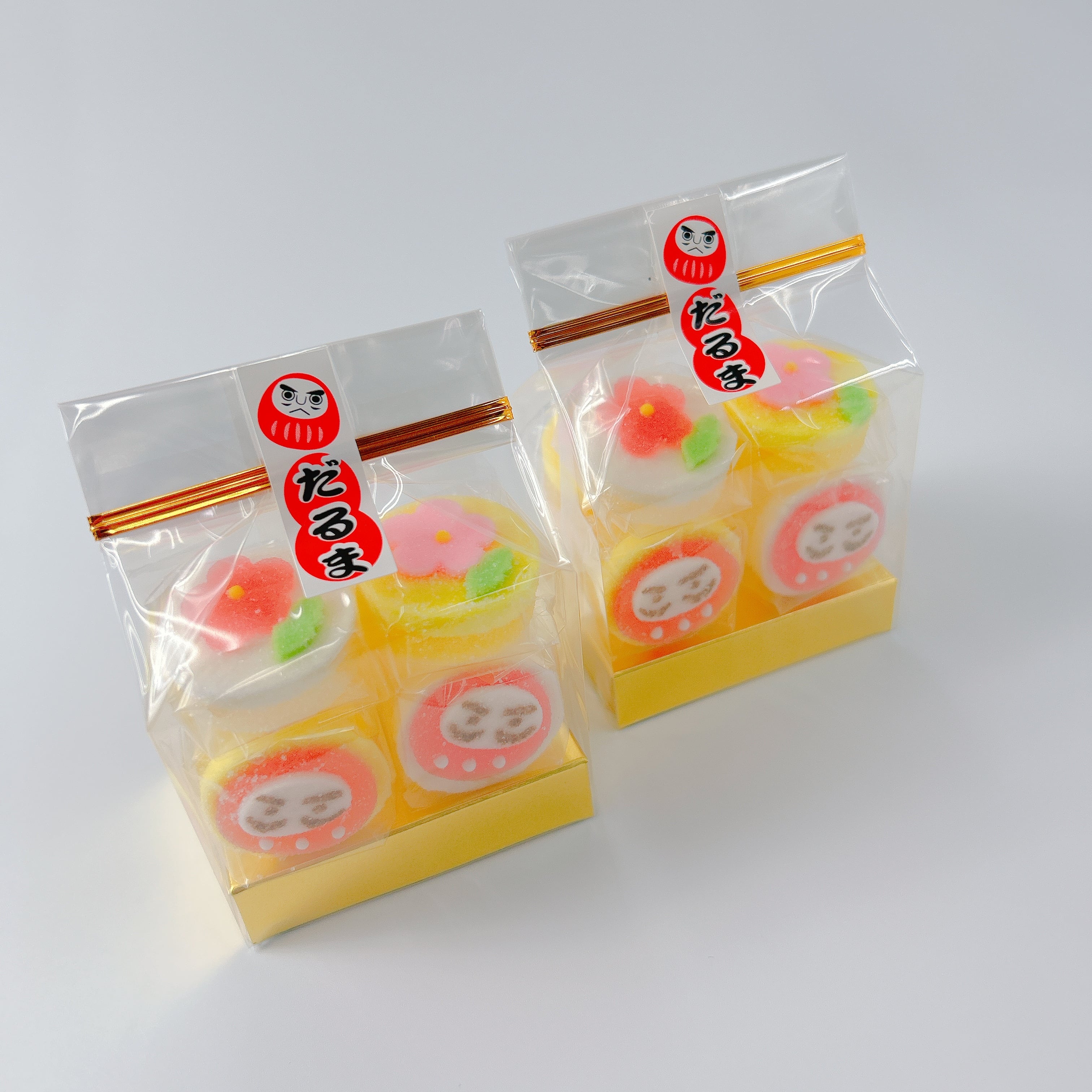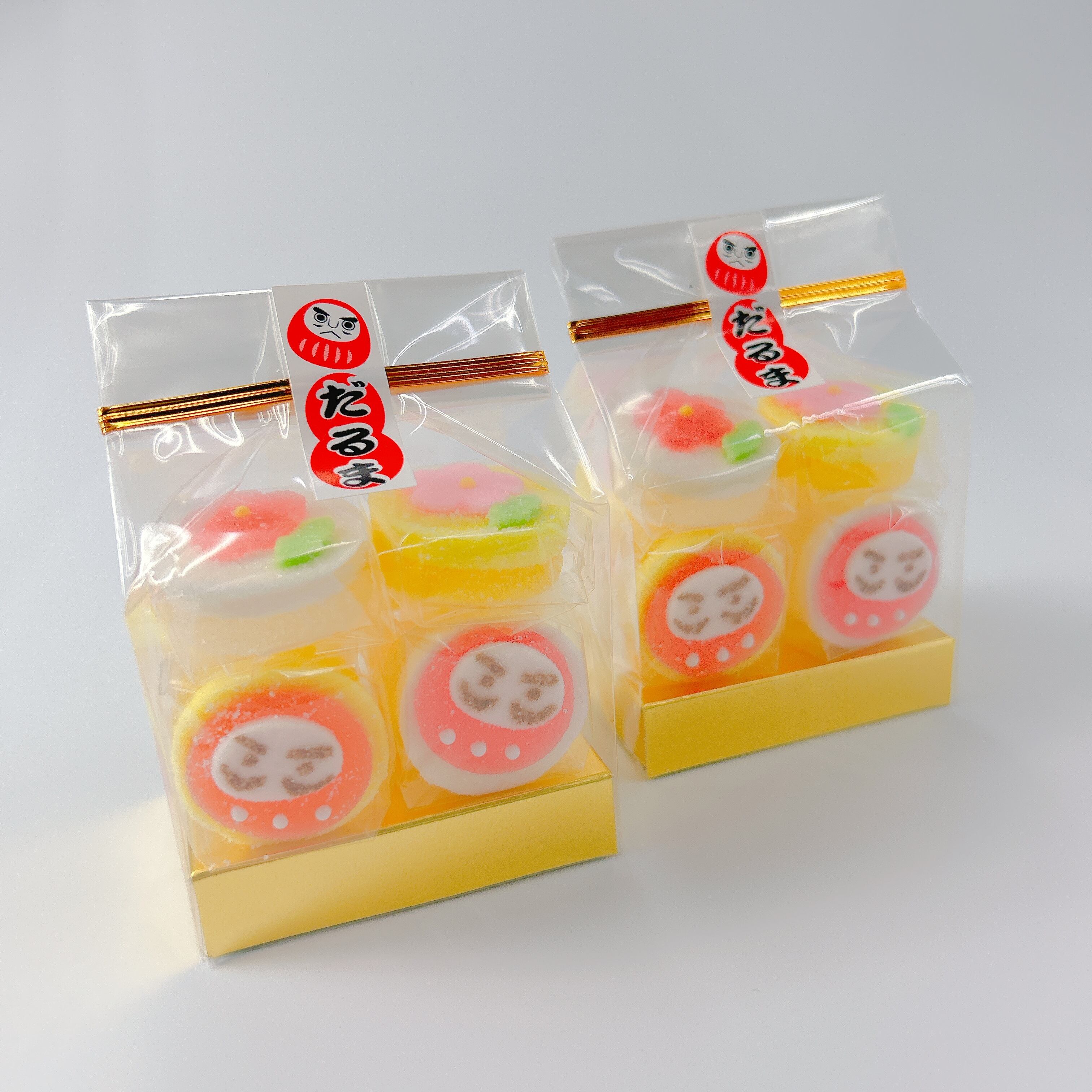 2色のだるま・2色の梅の花が入った冬季限定商品です
