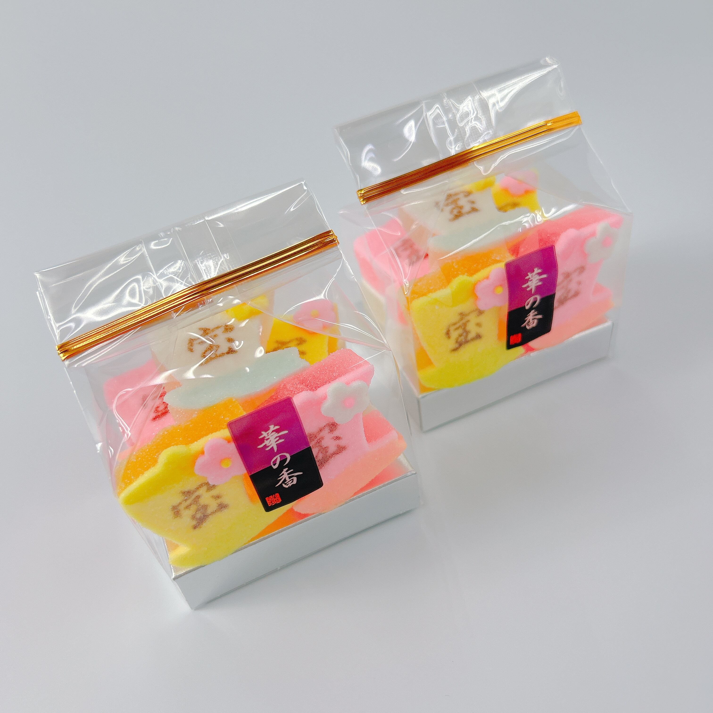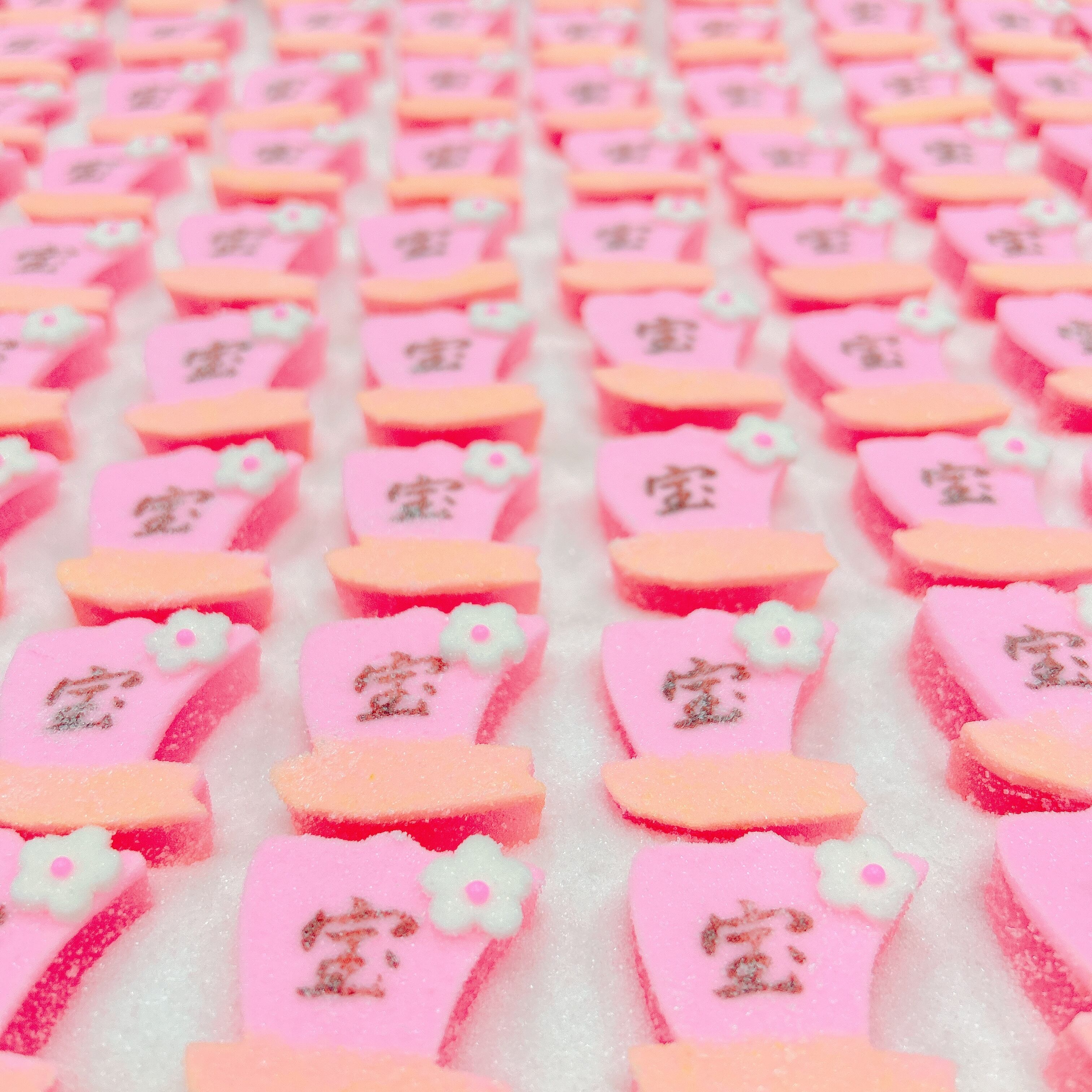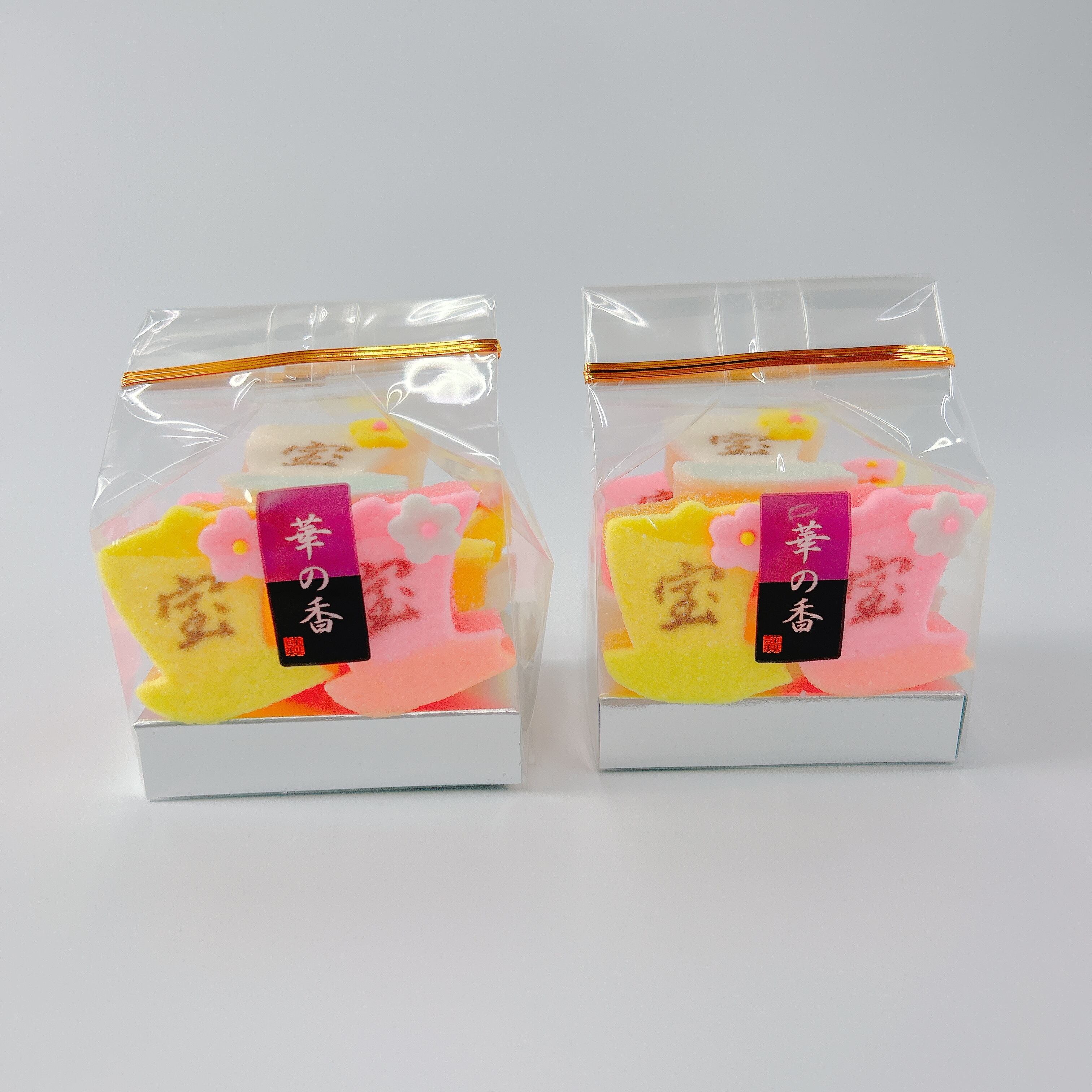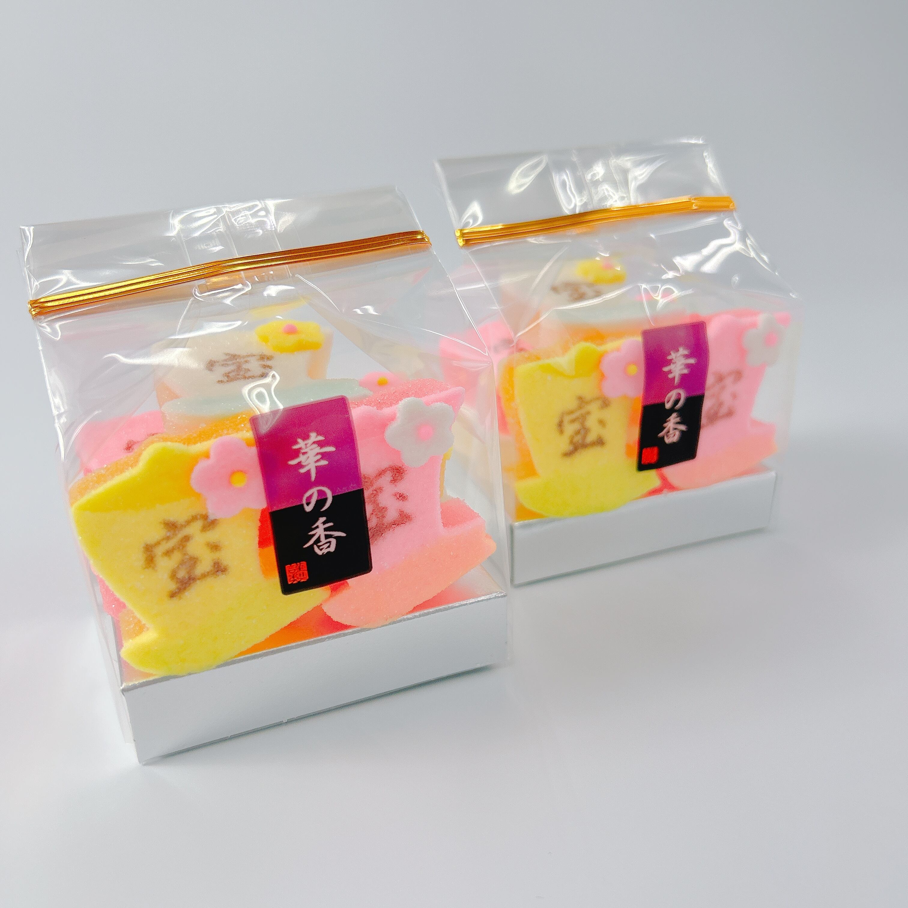 3色の宝船型の細工ゼリーに梅の花を添えた冬シーズン限定の半生菓子です