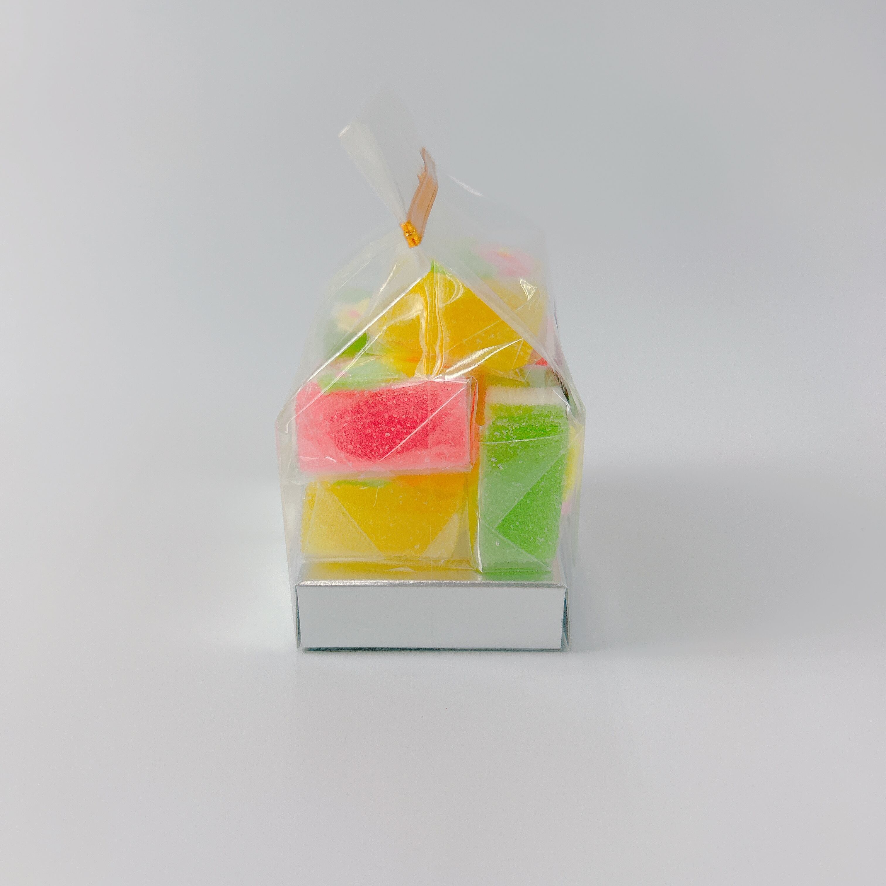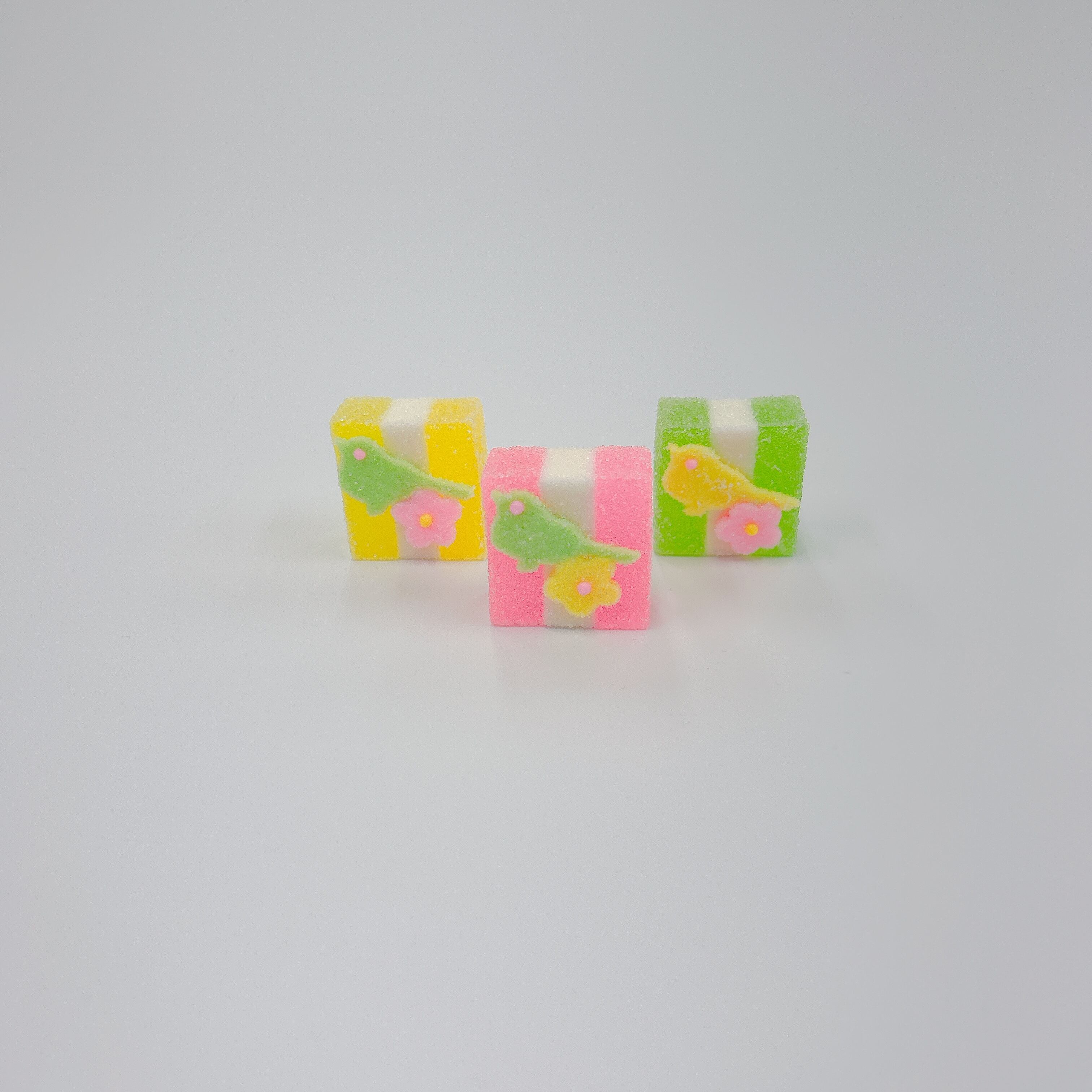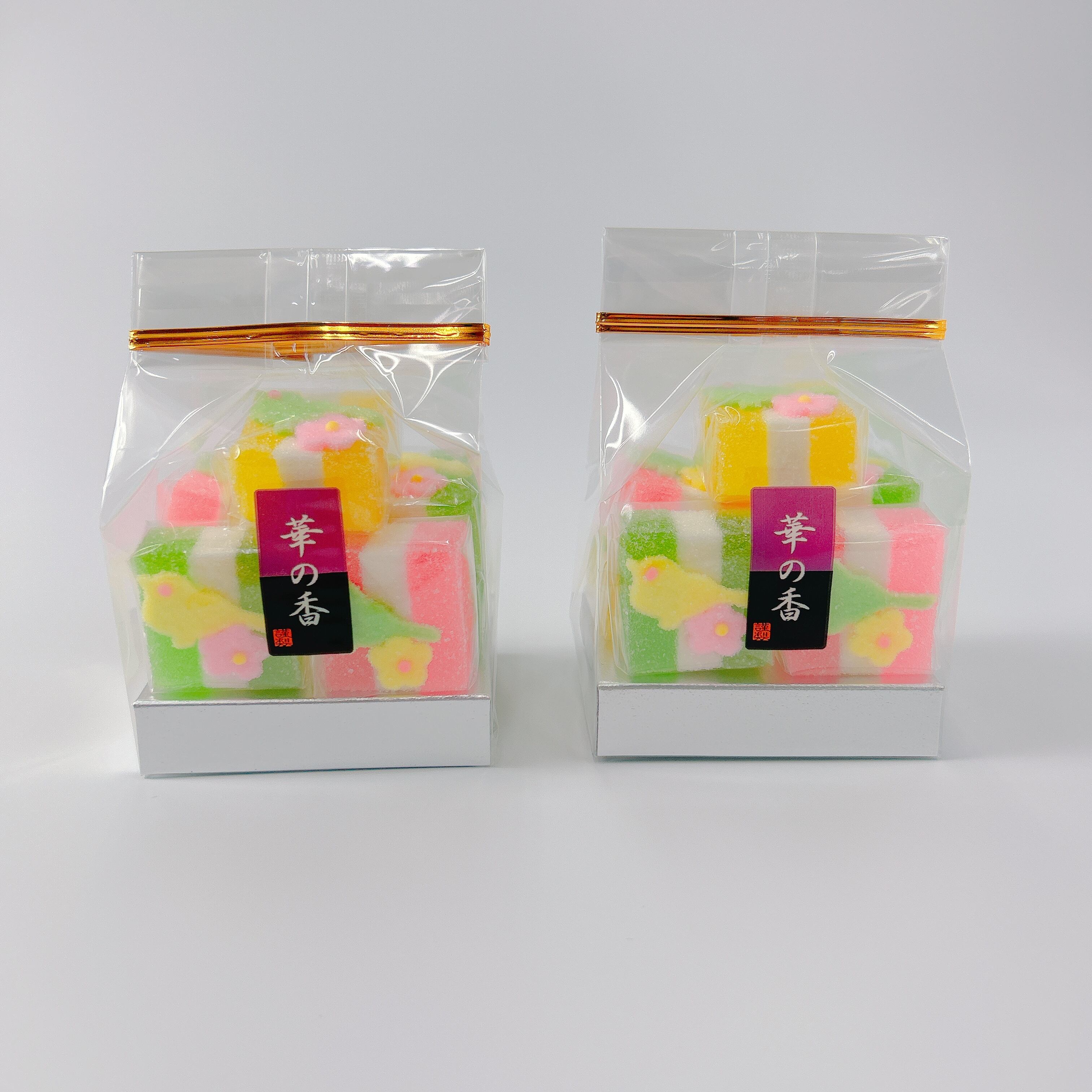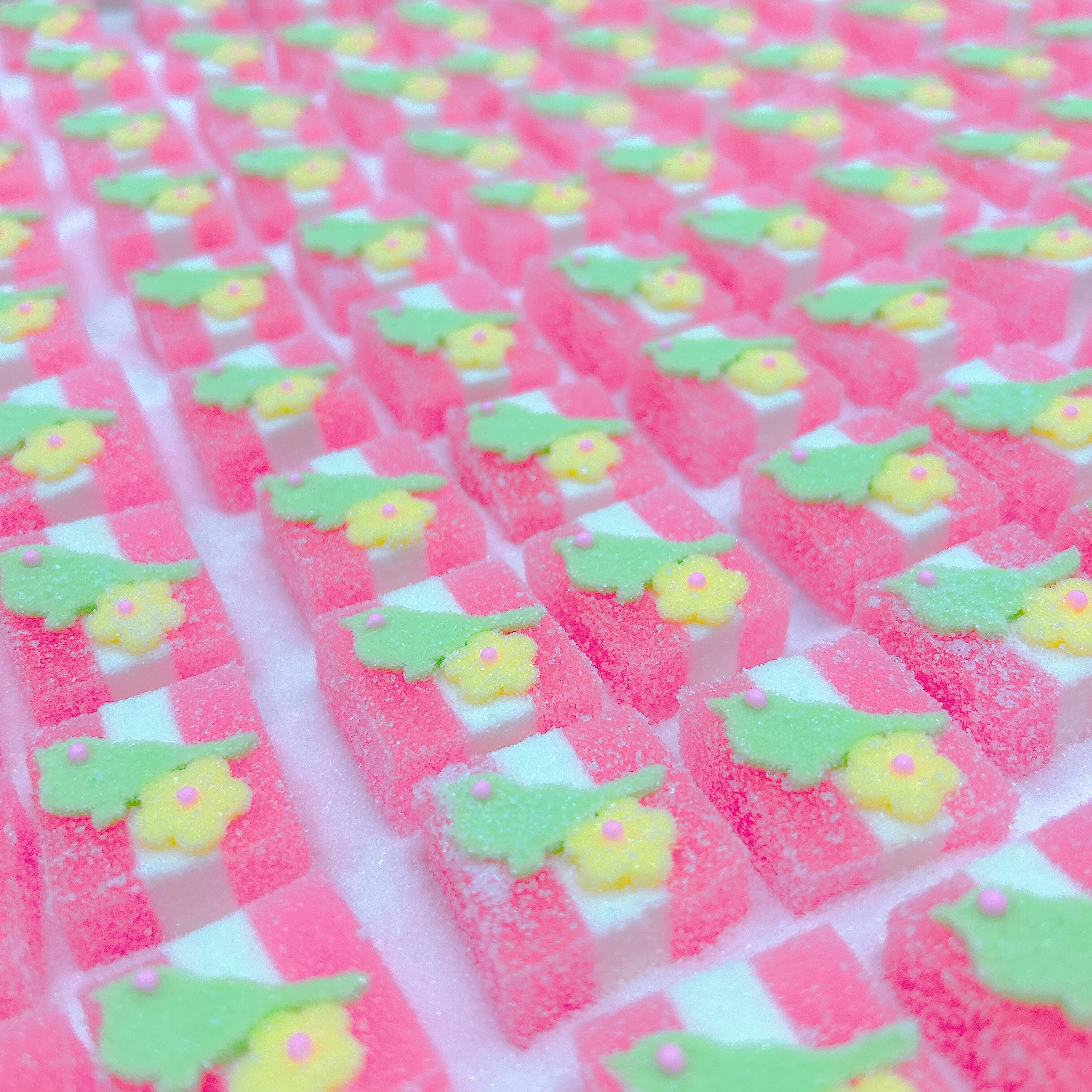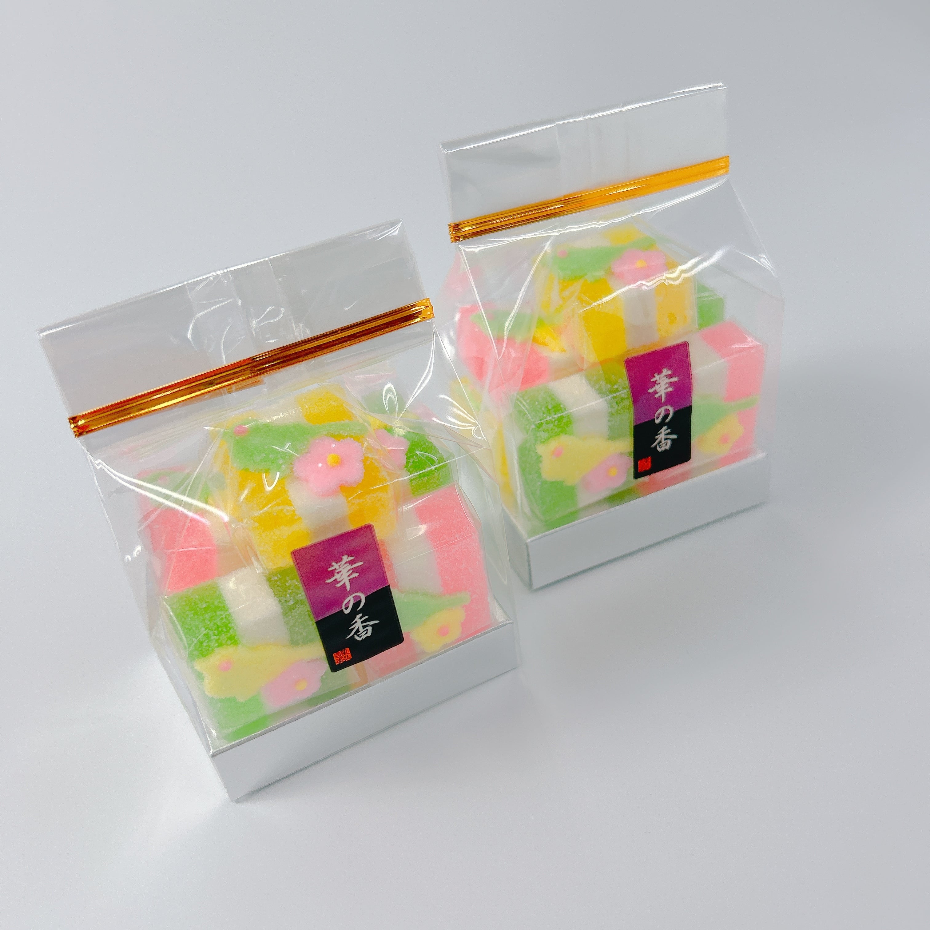 3色のゼリーにうぐいす・梅の花をそえた寒天細工ゼリーです