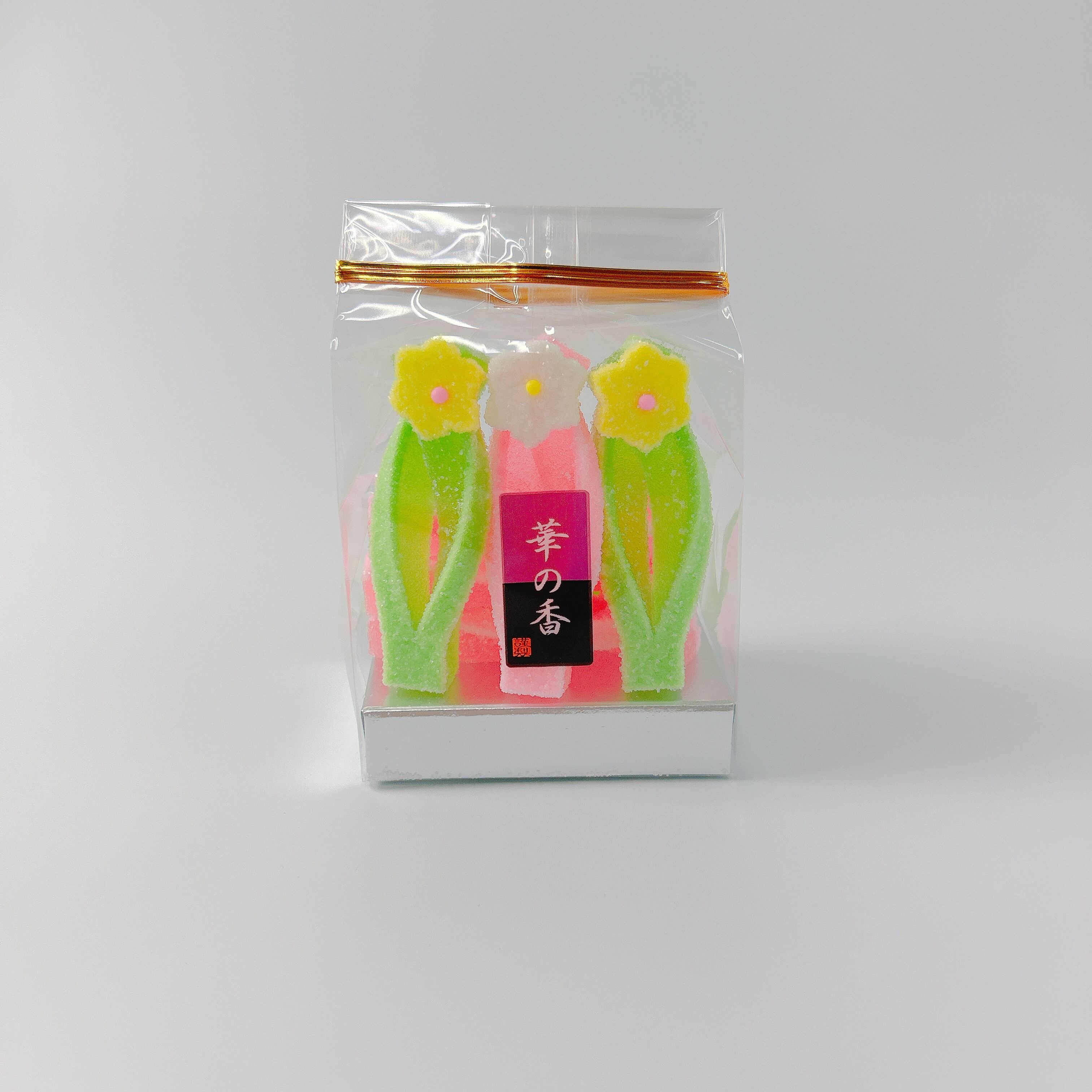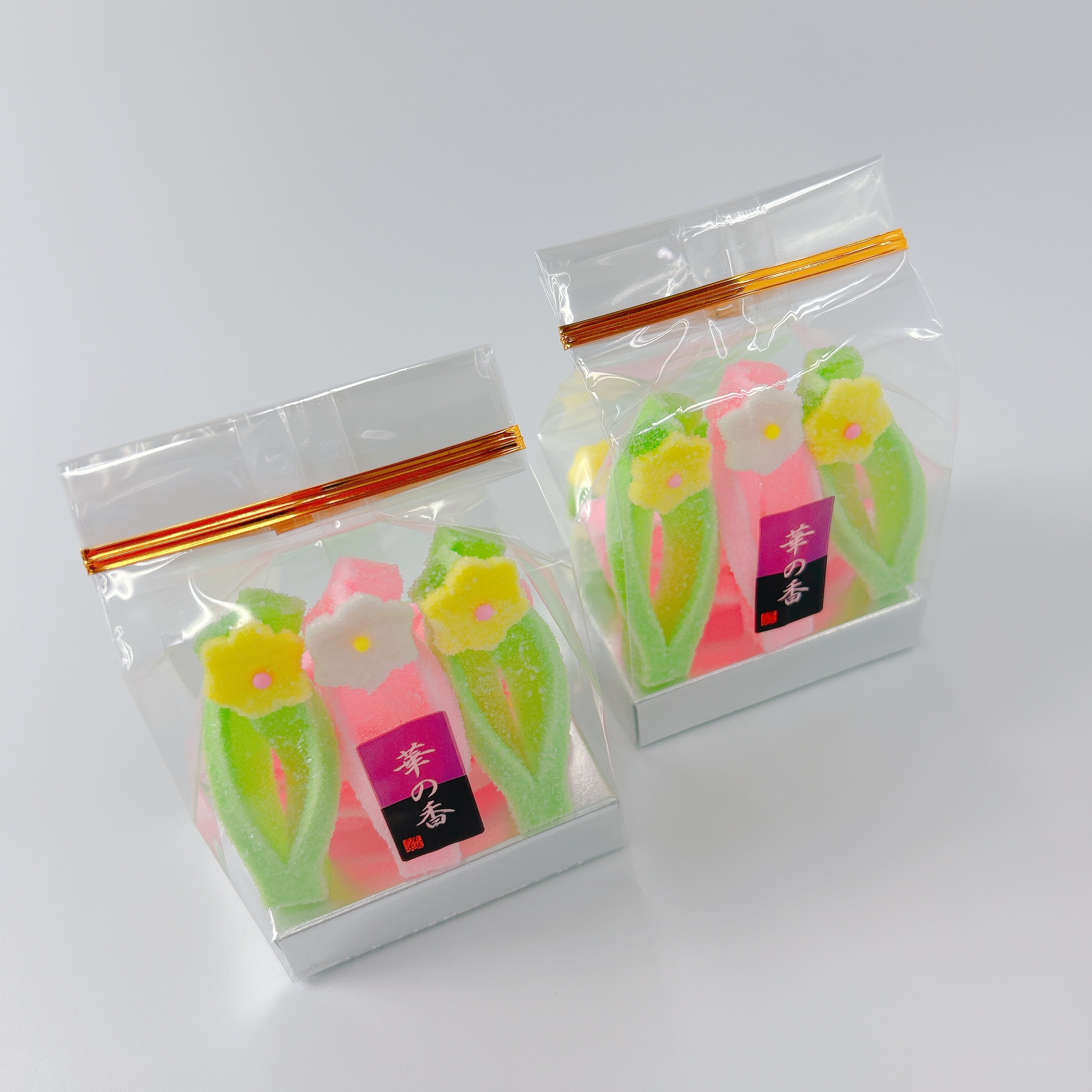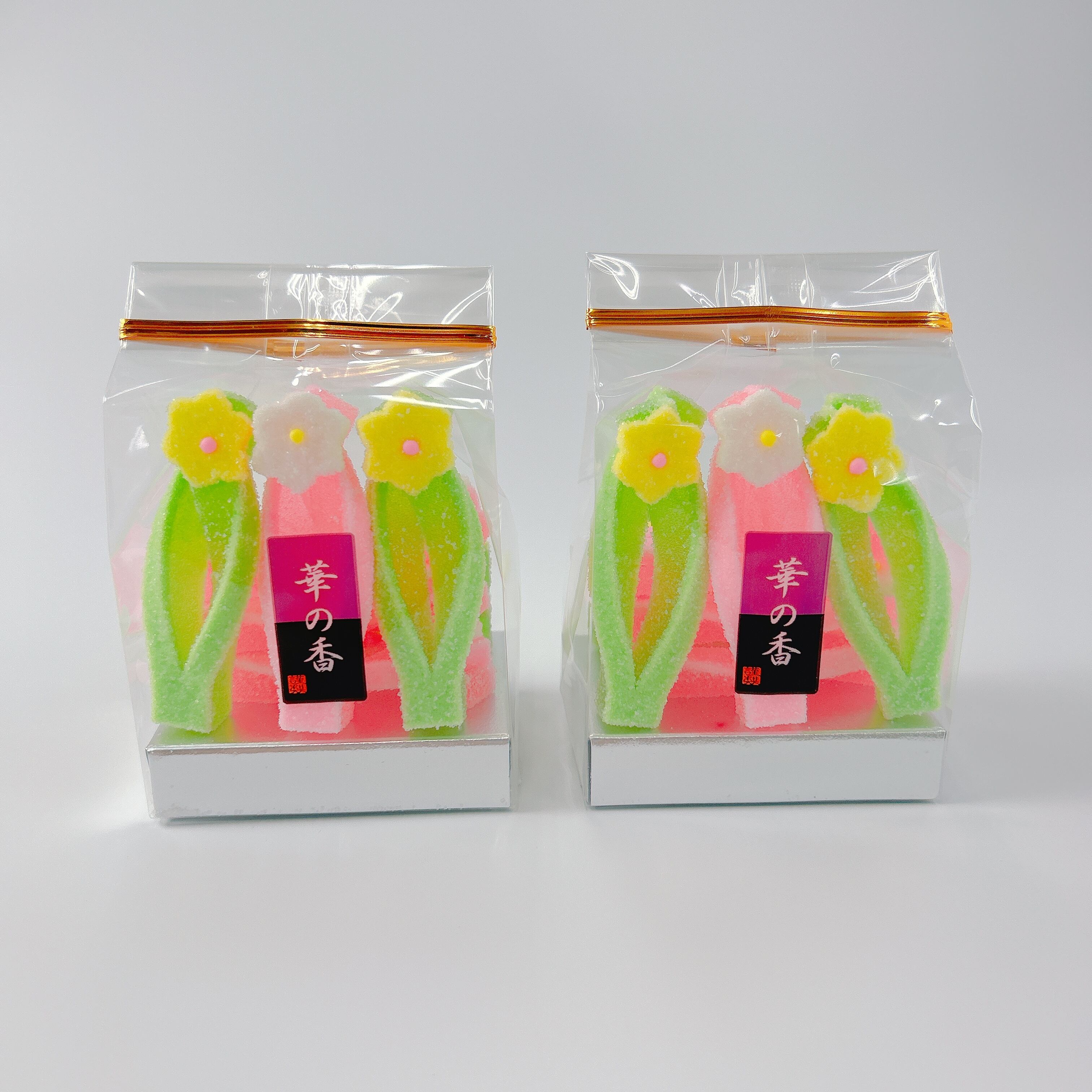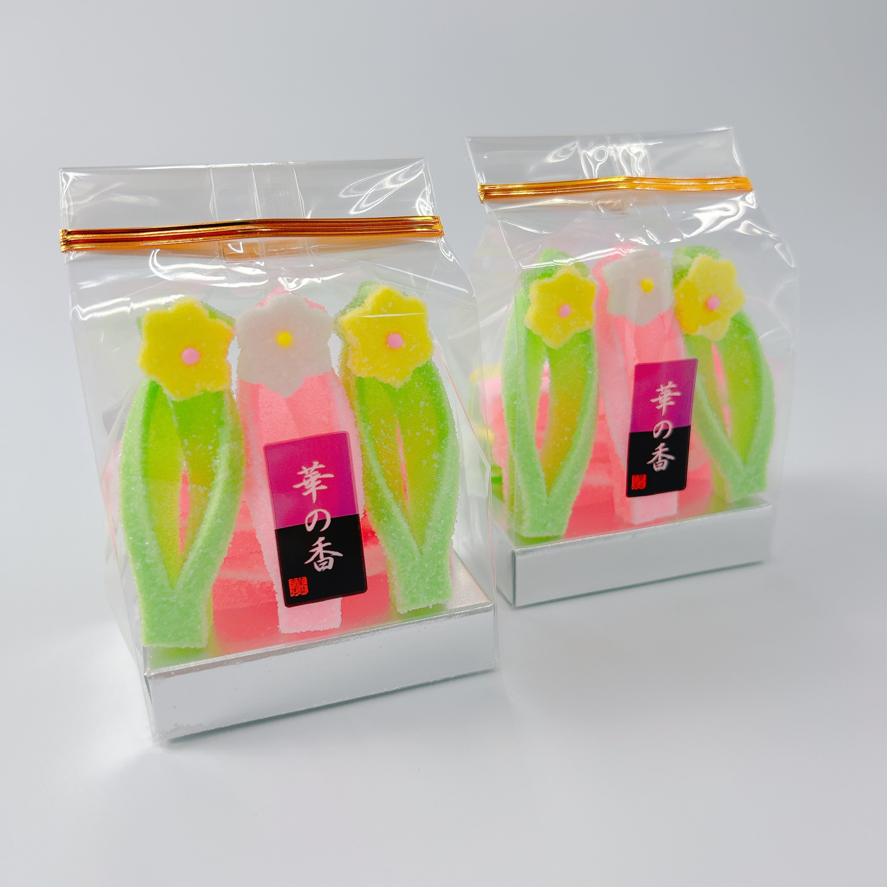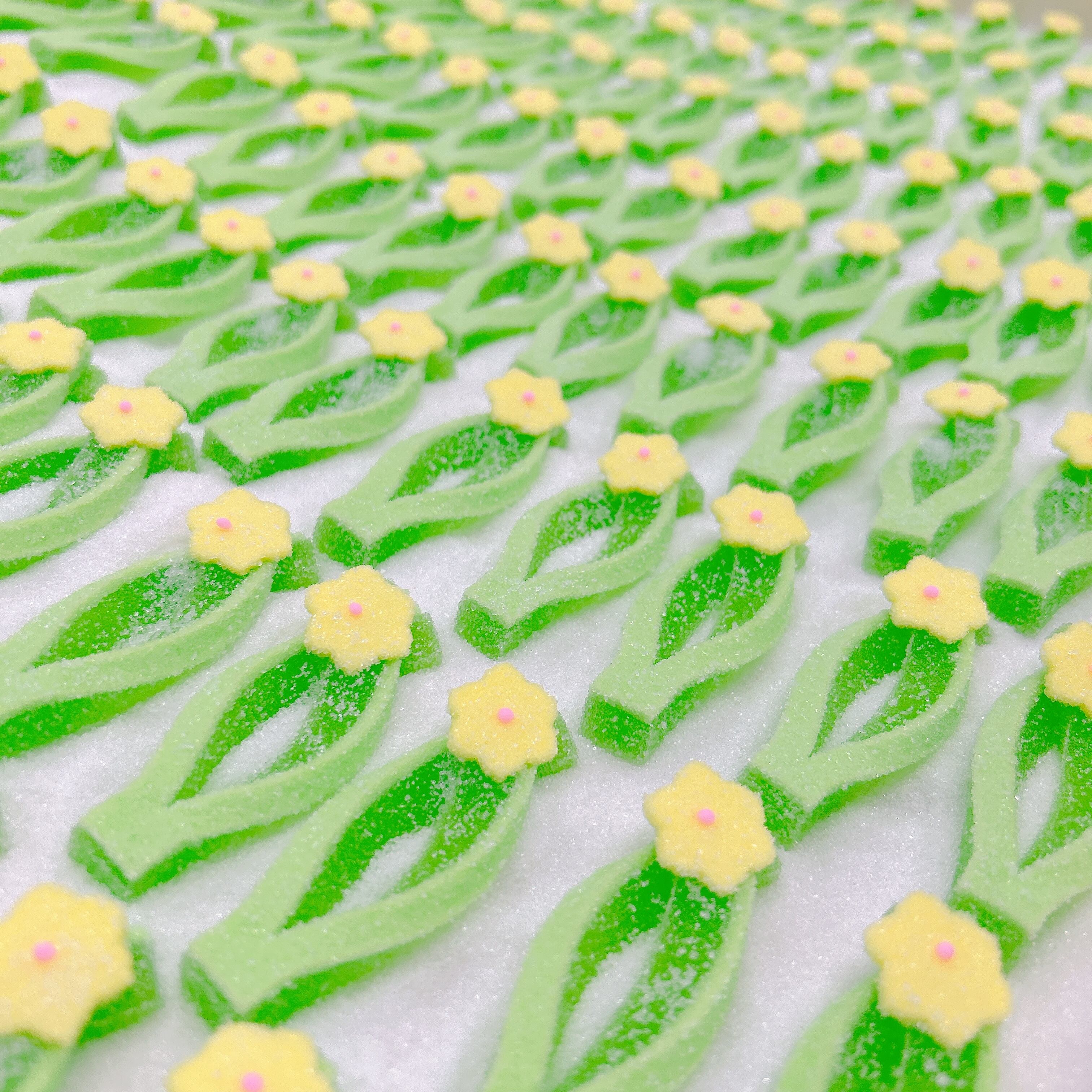 ピンク・緑2色の水仙をイメージした半生菓子です