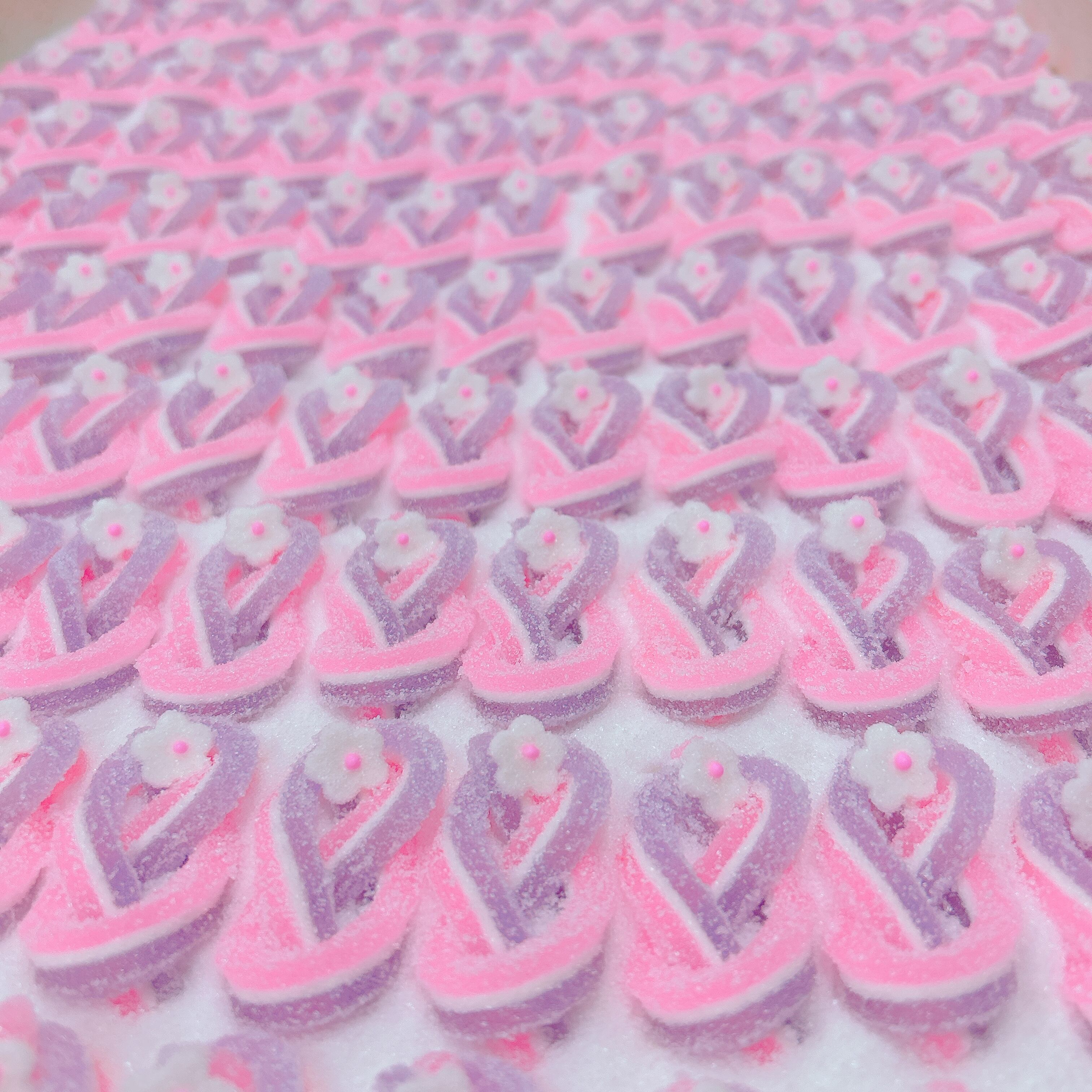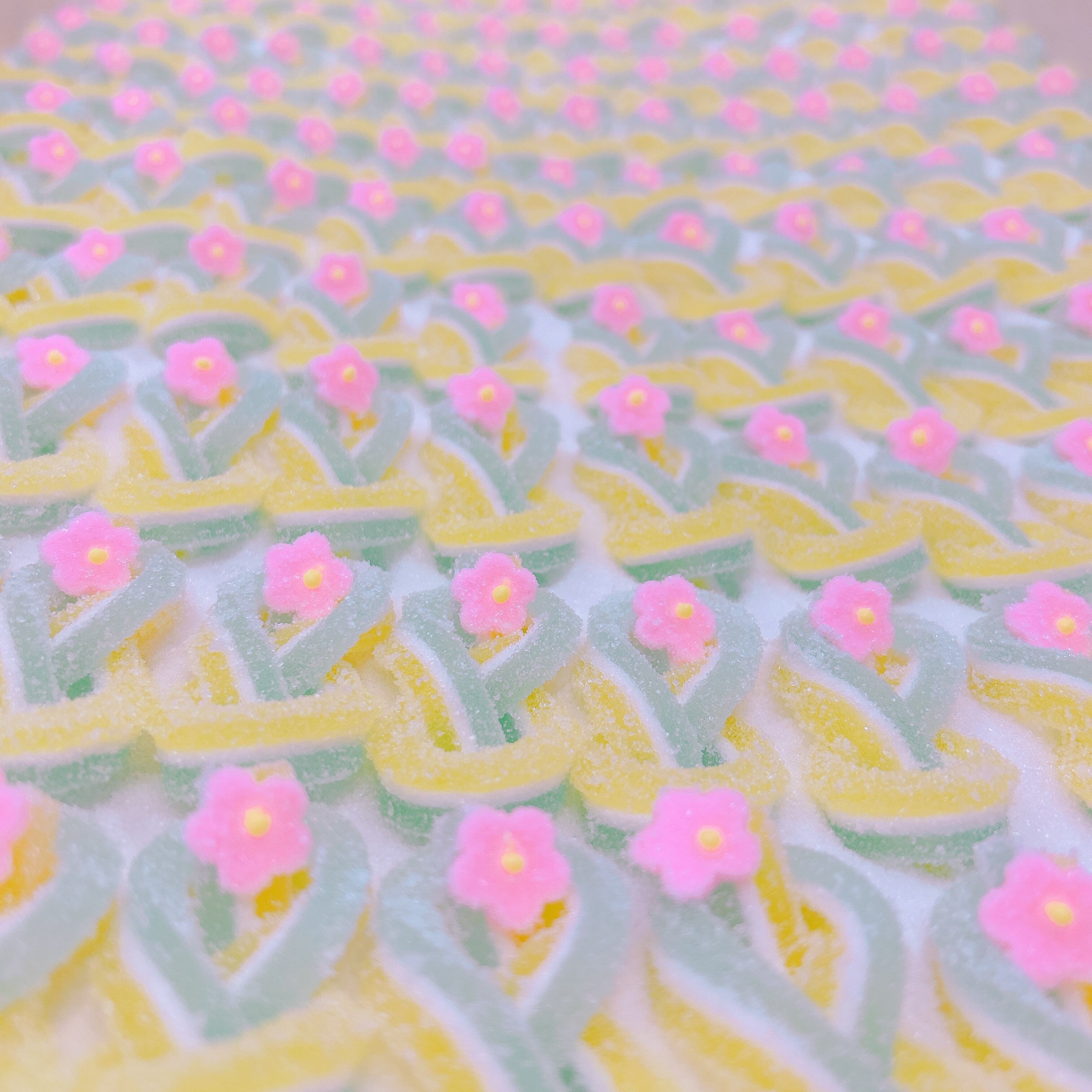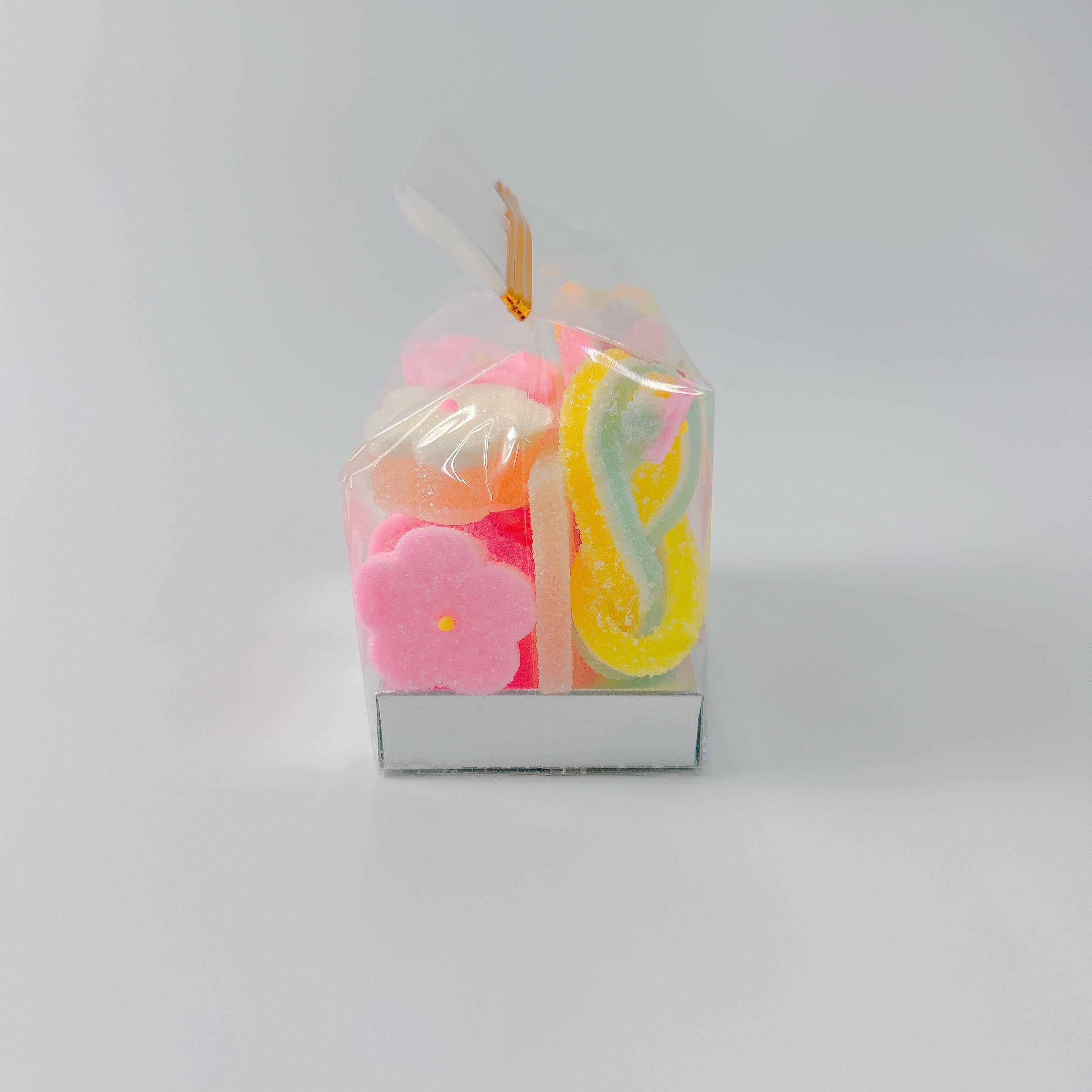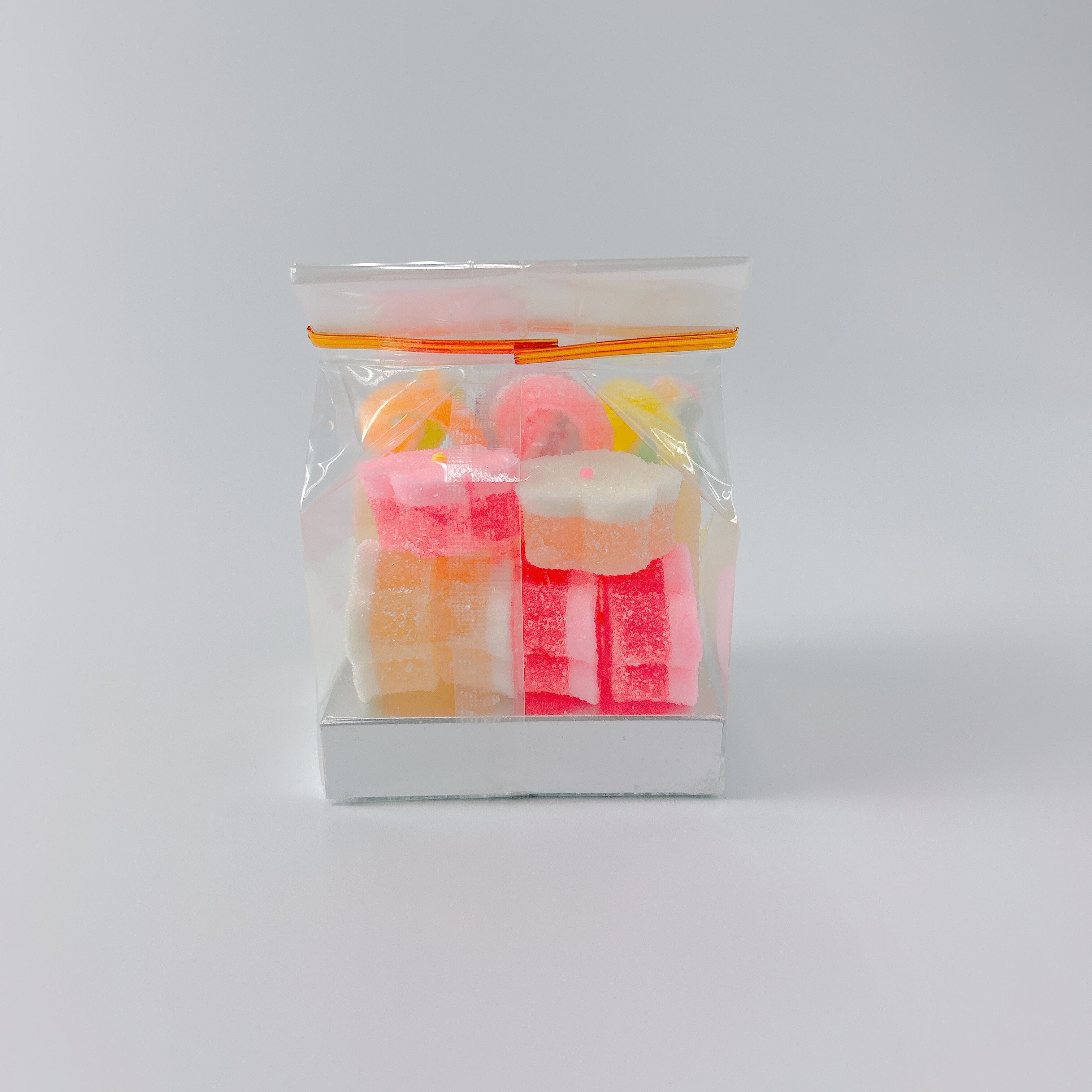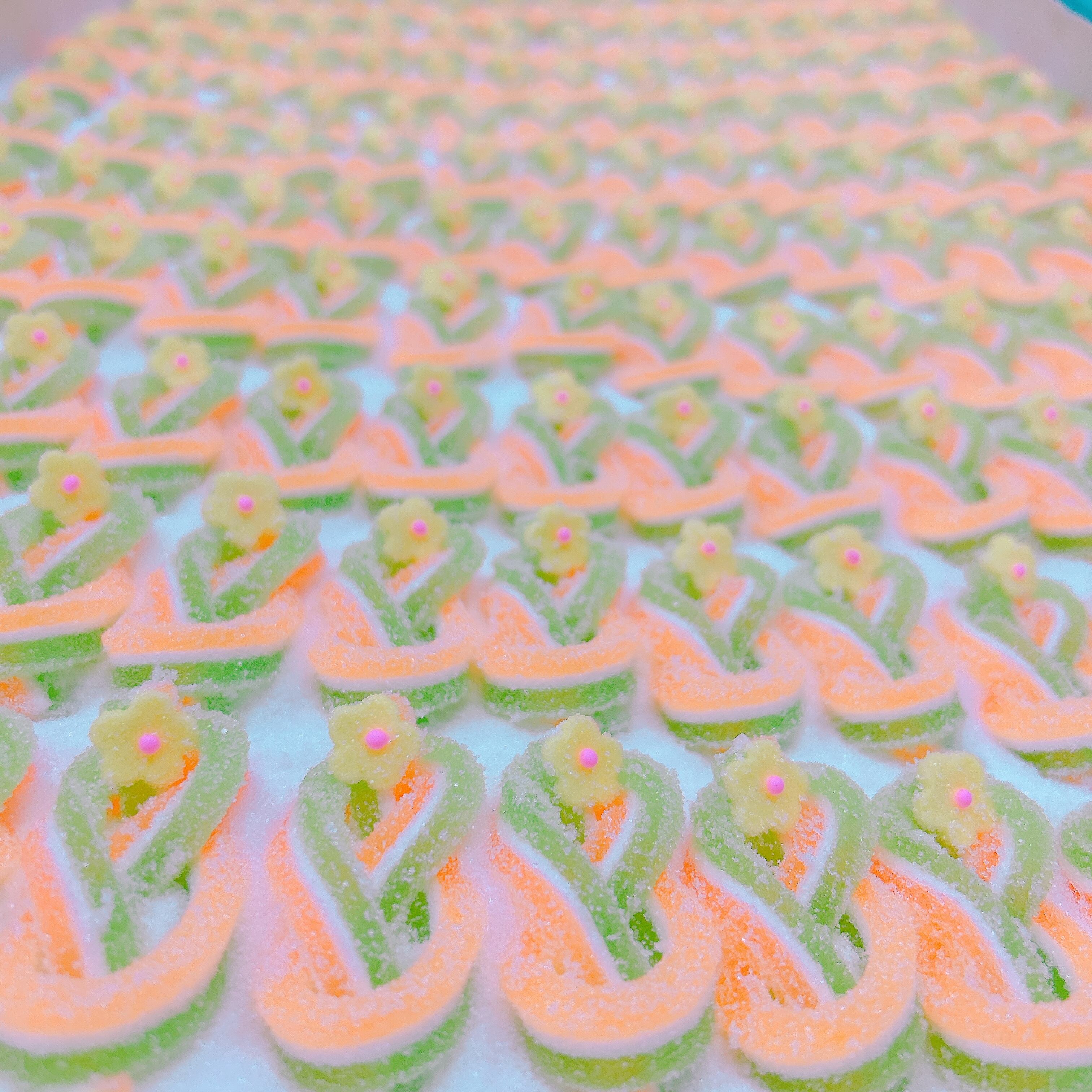 2色のゼリーと鳳瑞を合わせた3種類の千代結・紅白の梅が3個ずつ入った寒天細工ゼリーです